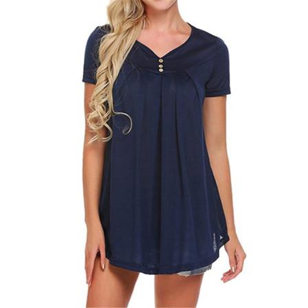 Dam T-shirt V-ringad Randig Topp Kortärmad Dragkedja Slimmad Blus,