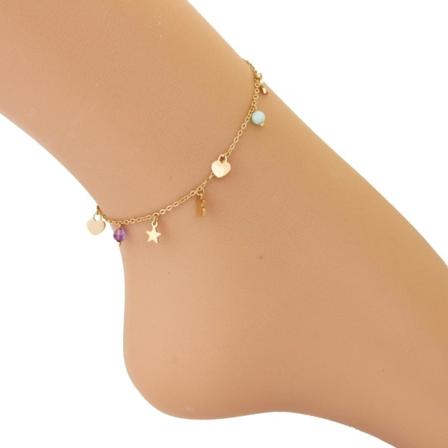 2 St Guld Fotsmycke Fotlänk Vristlänk Fotkedja - Hjärta & Kula Guld