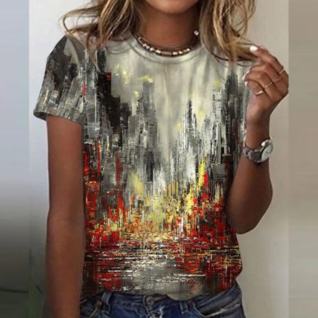 Kvinnor Boho Pullover T-shirt Med Rund Hals