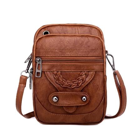 Naisten PU-nahkainen miniolkalaukku brown
