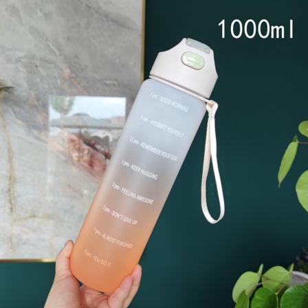 Vannflaske 1L, Sportsvannflaske med sugerør og tid, drikkeflaske, lekkasjesikk…