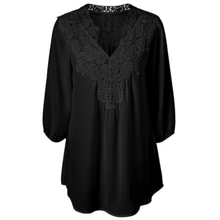Virkad T-shirt Med Spets För Damer Enkel Tunikablus