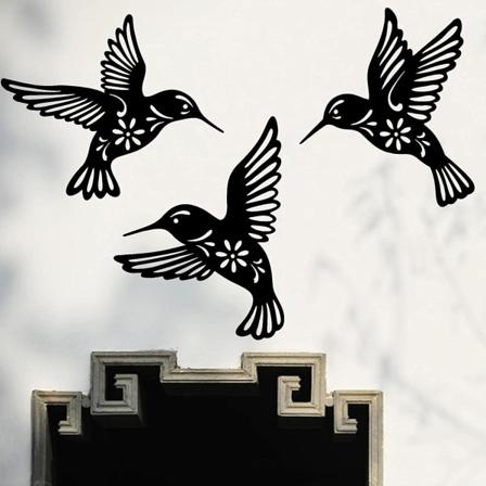Metal Kolibri Vægdekoration, Rund Kolibri Blomst Metalramme, Vægophæng Kunstværk x