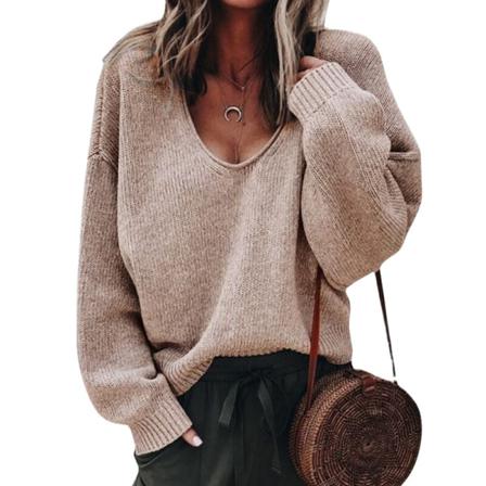 Dam Långärmade Stickade Tröjor Stretch Jumper Toppar